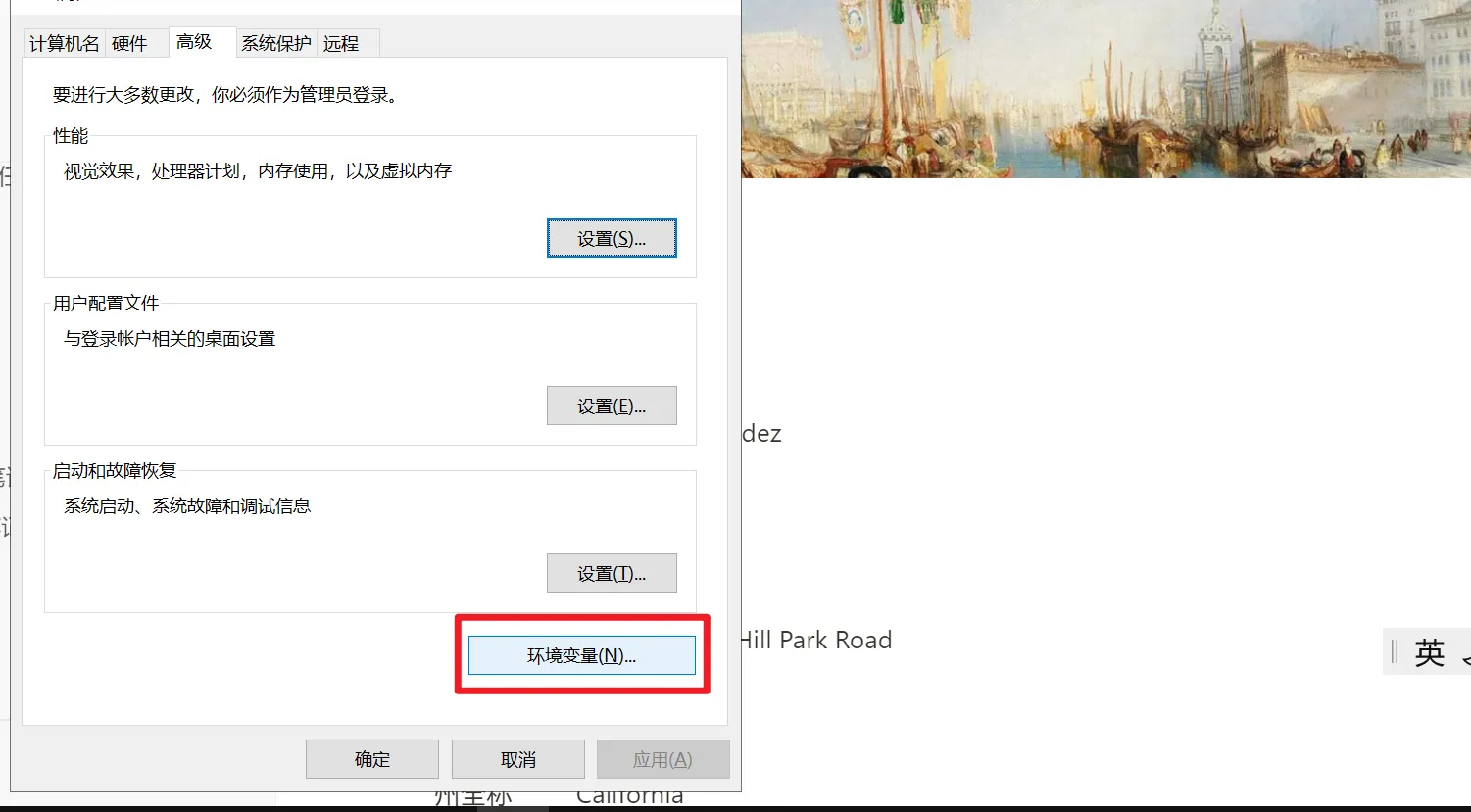 点击”环境变量”