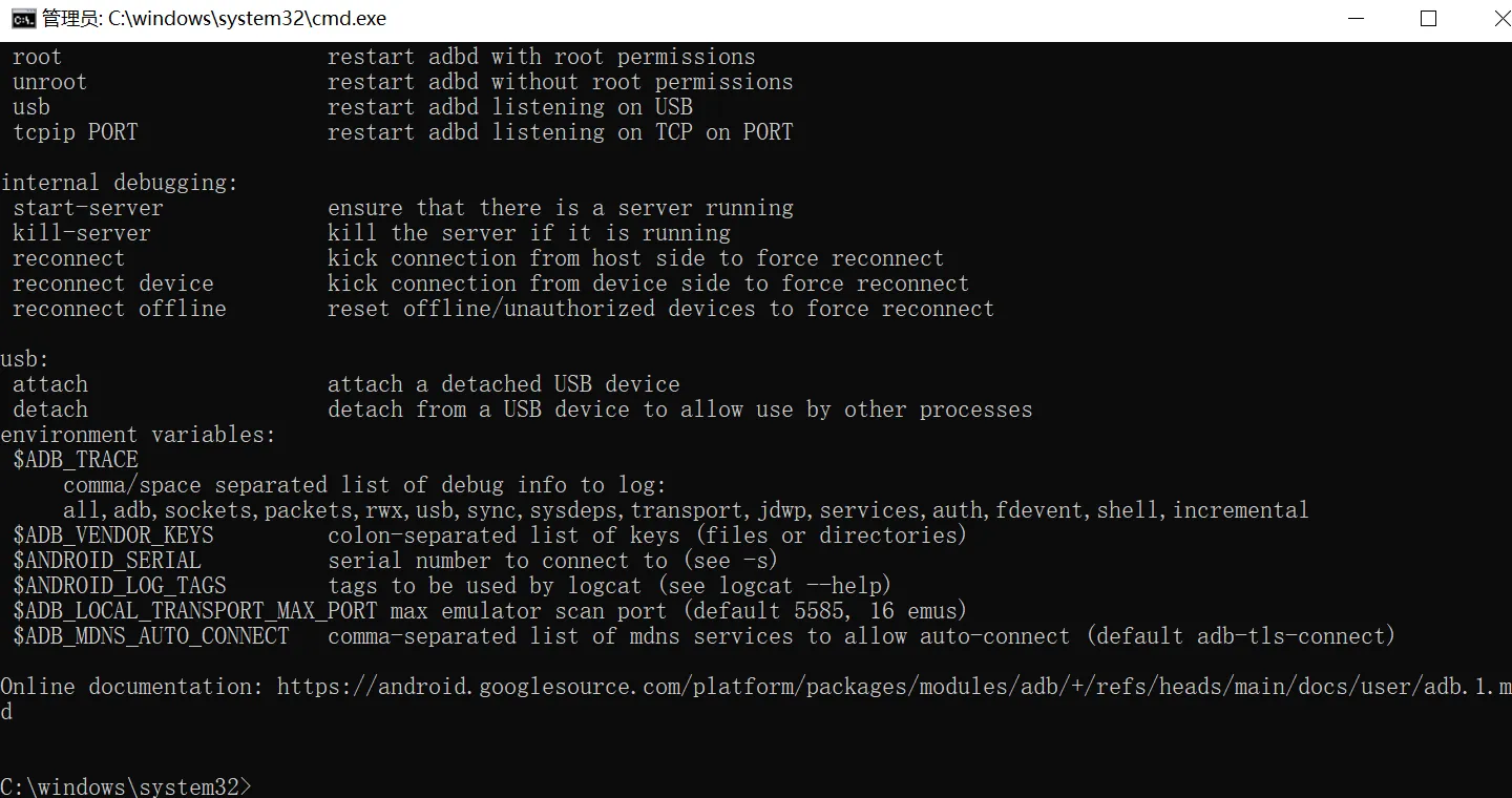 在cmd中输入adb, 然后按回车