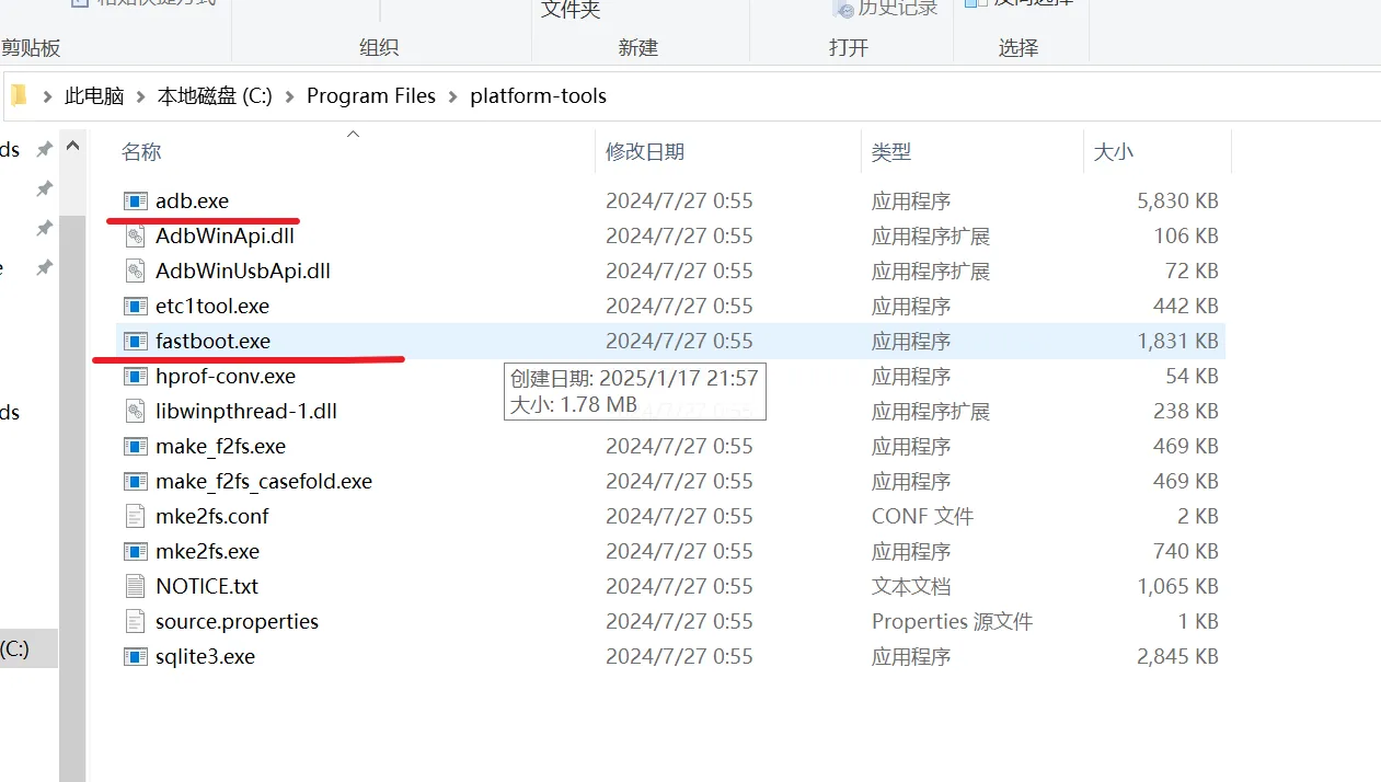 安装包里面包含fastboot和adb